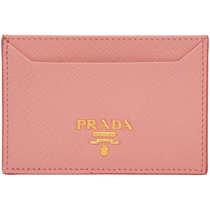 peony pink saffiano leather card holder prada