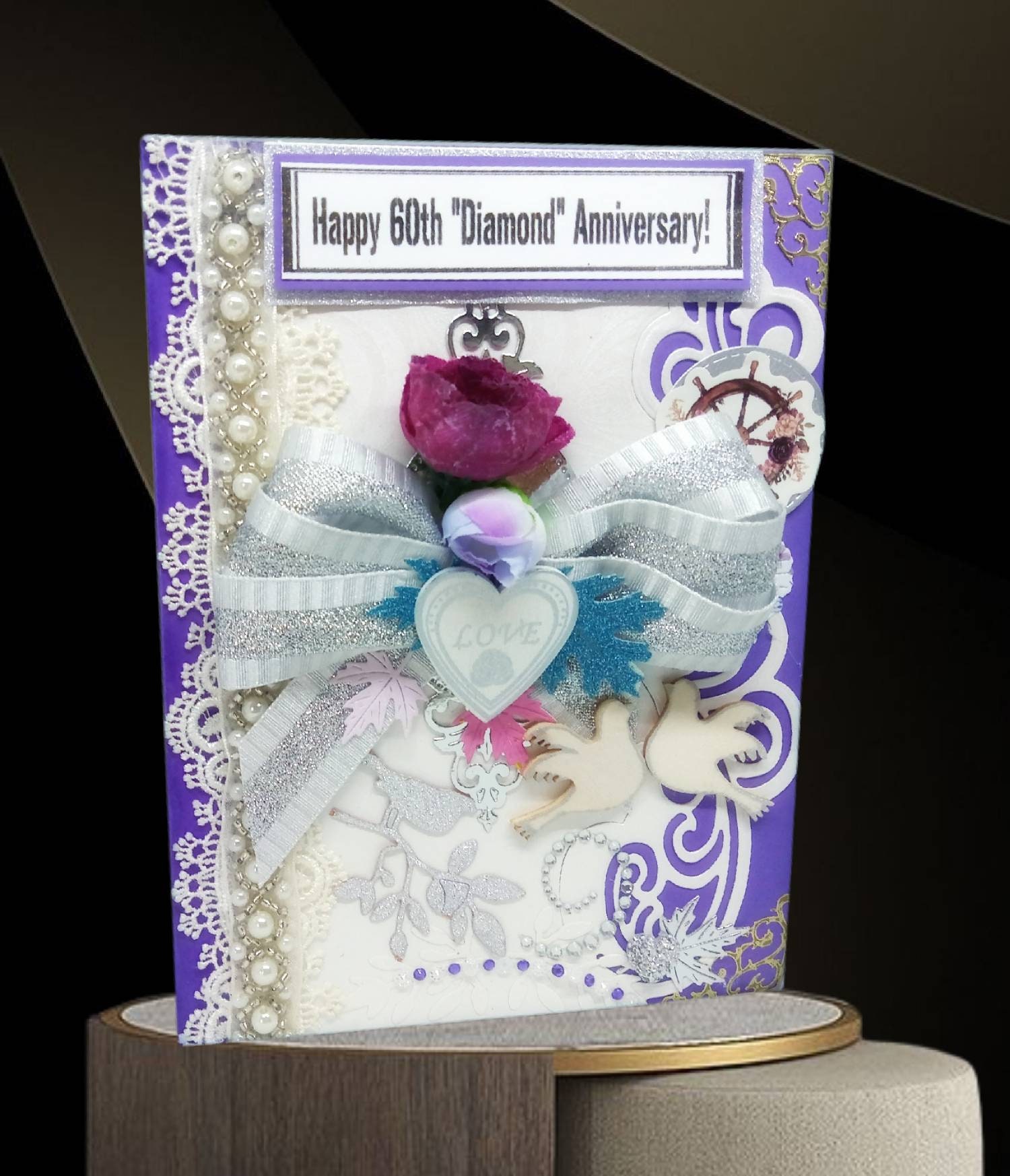 60th wedding anniversary card with paper lace heart free personalisation by looks inviting with free uk delivery