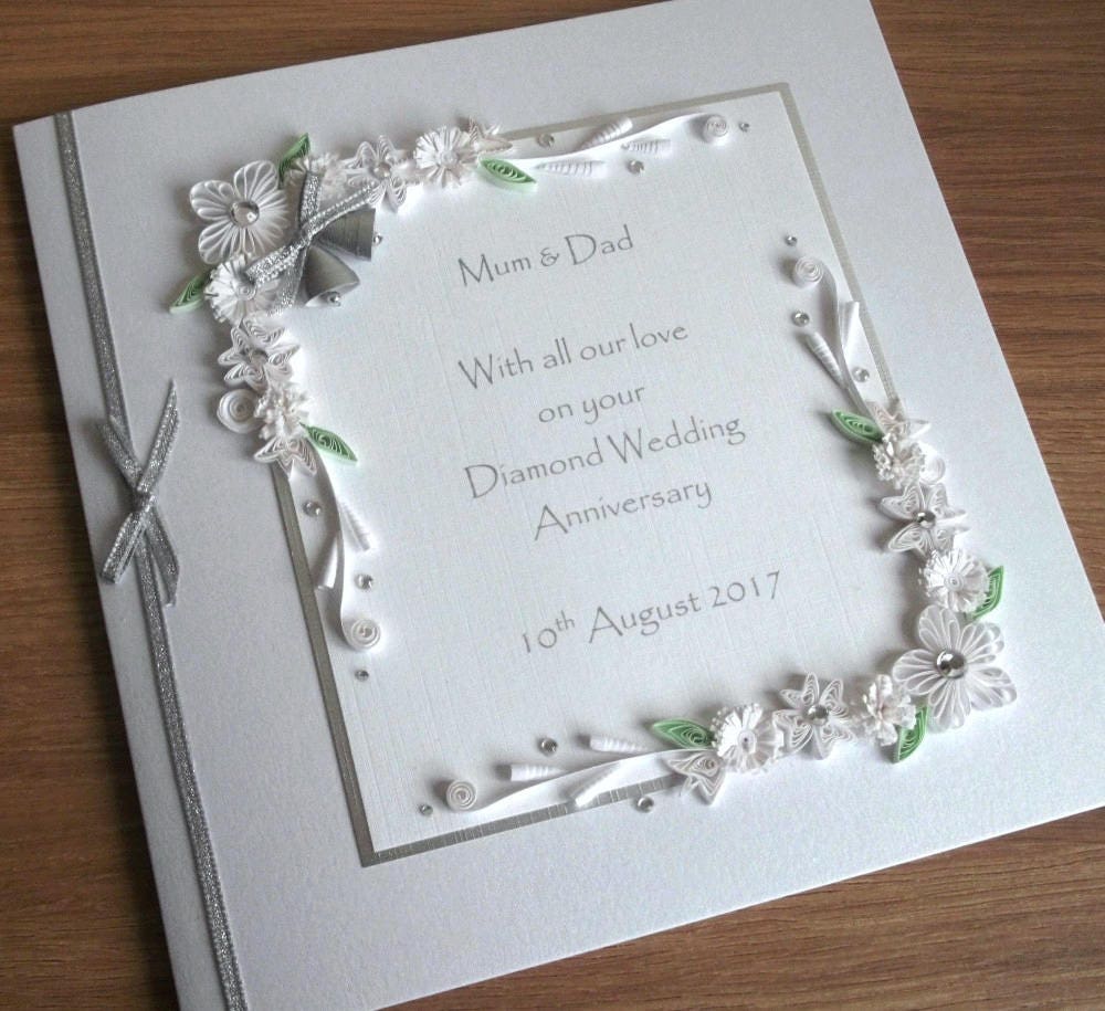 quilled 60th diamond wedding anniversary card mum and dad etsy